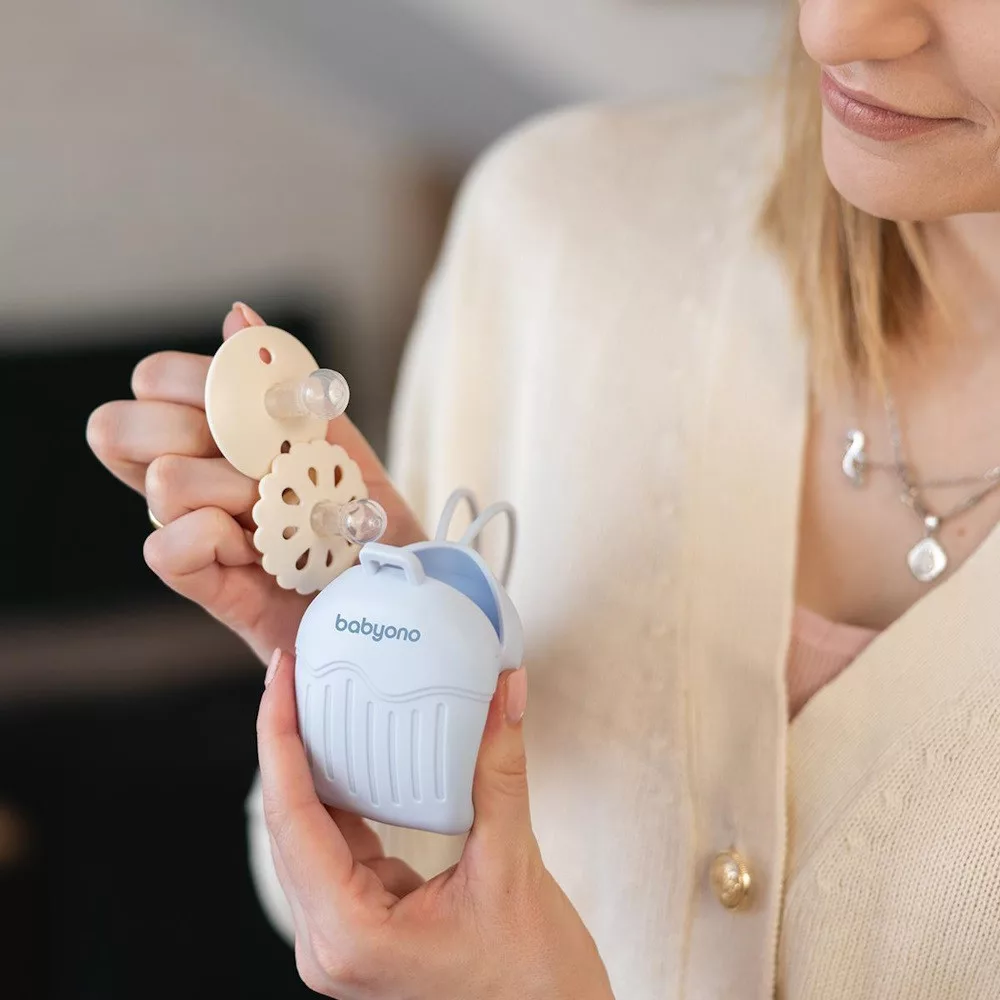 A BabyOno szilikon cumitartó tok kék színben praktikus és higiénikus megoldás két cumi tárolására. A rugalmas szilikon anyag megóvja a cumikat a szennyeződésektől, miközben könnyen tisztítható és gyors hozzáférést biztosít. Letisztult, univerzális színe miatt ideális választás mindennapi használatra és utazáshoz is.