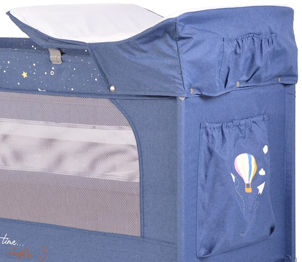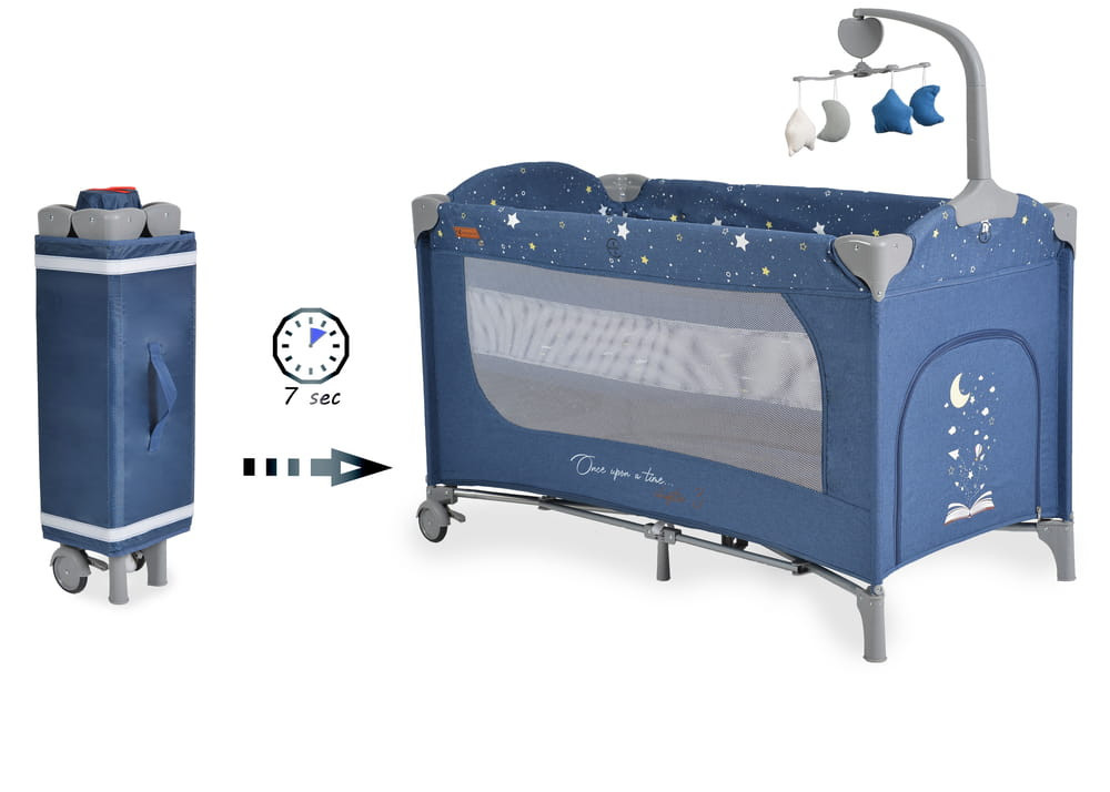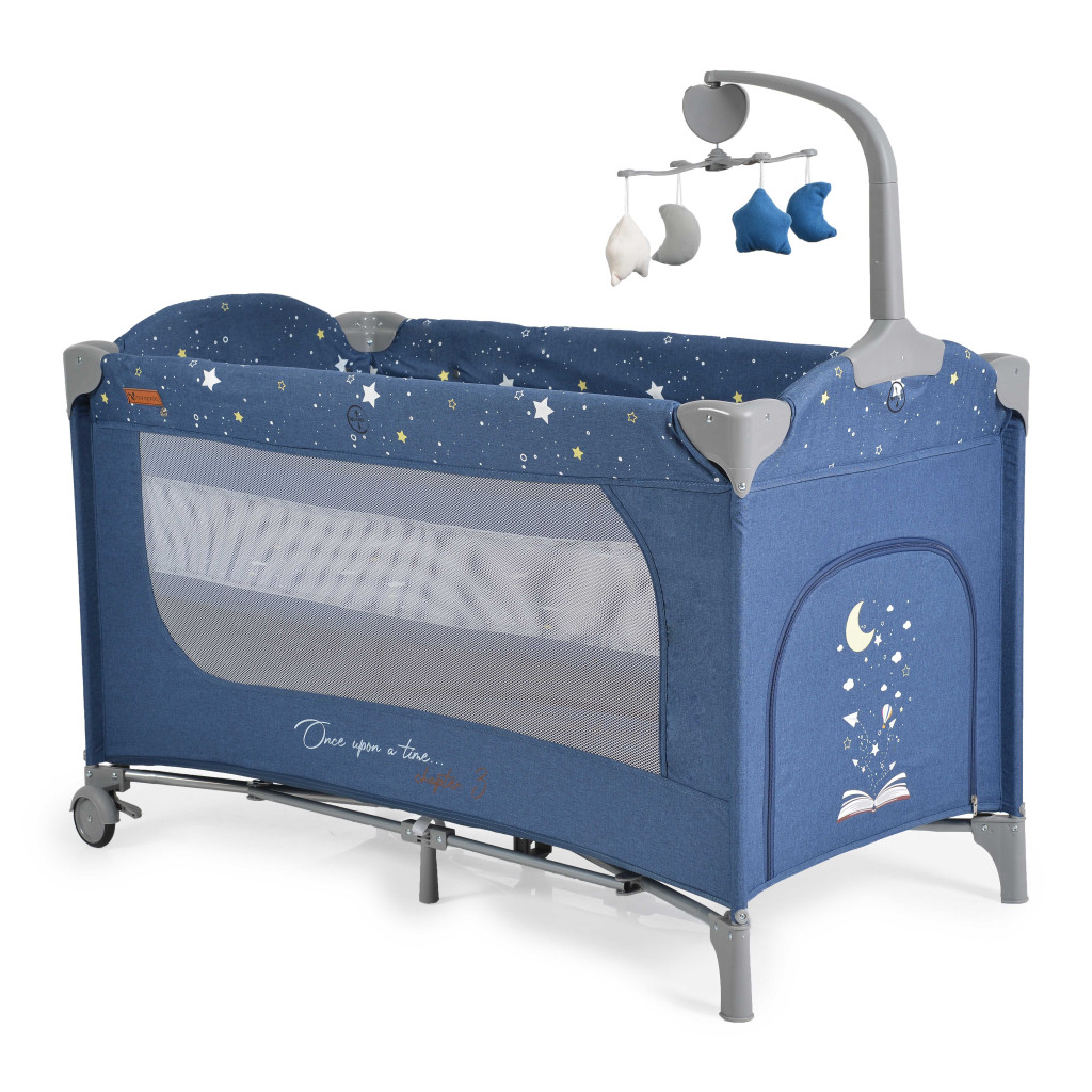 Cangaroo Once Upon3 két szintes utazóágy zenélő játékkal, pelenkázós - farmer kék
