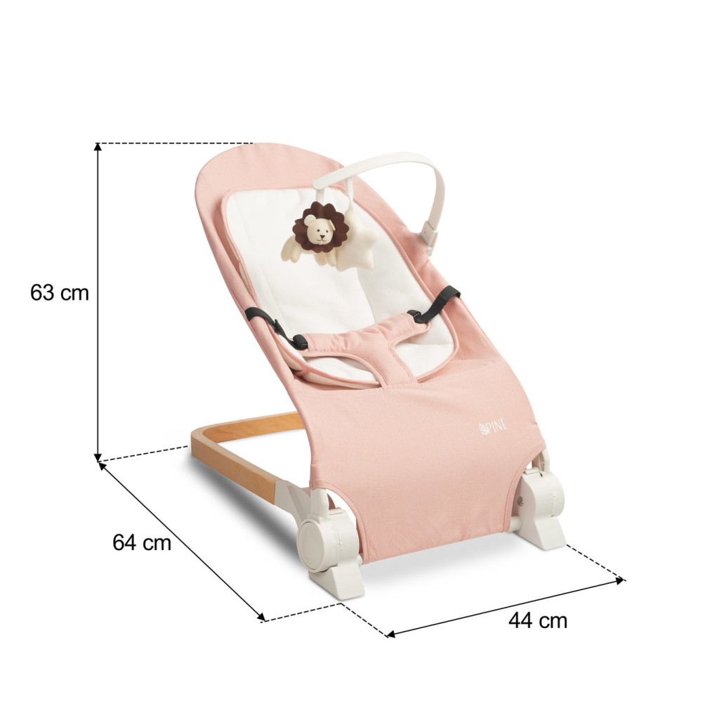 A Caretero PINE pihenőszék tökéletes a mindennapi babagondozáshoz. Gyermeke mindig kényelmesen pihenhet, függetlenül attól, hogy hol tartózkodik hiszen kicsire csukható és könnyen  szállítható. A PINE pihenőszék innovatív kialakítása tökéletesen alkalmazkodik a baba természetes ritmusához, így otthonos légkört teremt az elalváshoz. A rugózó gyengéd és sima mozgása fokozza a biztonság érzését a kicsi számára. A 3 pontos biztonsági övvel felszerelt, teljes védelmet nyújt gyermeke számára. A stabilitást a csúszásgátló betétekkel ellátott, masszív konstrukció garantálja, így minden mozgás biztonságos és csendes. Az ergonomikus háttámla három kényelmes pozíciót kínál. Könnyen állítható fekvő helyzetből enyhén hátradőlt helyzetbe, így gyermeke a lehető legkényelmesebben játszhat és ismerkedhet a környezetével. A PINE pihenőszék könnyű kialakítása megkönnyíti a szállítását, így tökéletes nyaraláshoz vagy hétvégi kiruccanásokhoz. A puha betét garantálja gyermekének a maximális kényelmet a ringatószékben töltött minden pillanatban. A plüss játékokkal ellátott, levehető játékrúd szórakoztatja gyermekedet, míg az elegáns fa alap stílust kölcsönöz és tökéletesen kiegészíti a gyerekszoba dekorációját. A pihenőszék újszülött kortól 12 kg-ig használható.