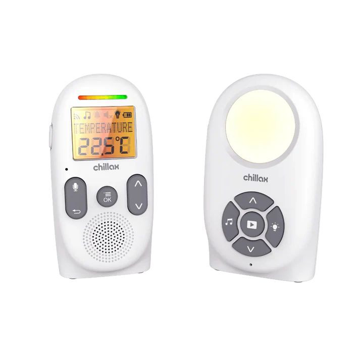Digitális DECT babaőr – megbízható, tiszta hangátvitellel. Ez a modern DECT babaőr garantálja a biztonságot és a nyugalmat minden szülő számára. A 120 kommunikációs csatorna és a zavarmentes kapcsolat révén mindig tisztán hallhatja gyermekét. Szabad terepen akár 300 méteres hatótávot biztosít, így otthon és a kertben is biztonságban tudhatja kicsinyét. Főbb jellemzők: Kétirányú kommunikáció: lehetőség van a babához beszélni az anyai/apai egységen keresztül. VOX hangérzékelés, amely automatikusan aktiválja az átvitelt a hangra reagálva. Szülői egység LCD kijelzővel és vizuális hangszintjelzővel. Övcsipesz a kényelmes hordozhatóságért. Éjszakai fény a babaegységen. Szobahőmérséklet-figyelés ±0,5 °C pontossággal. 5 beépített altatódal a nyugodt elalváshoz. Energiatakarékos ECO mód. Ez a babaőr ideális választás minden olyan szülő számára, aki megbízható, praktikus és sokoldalú megoldást keres gyermeke biztonságának megőrzésére.