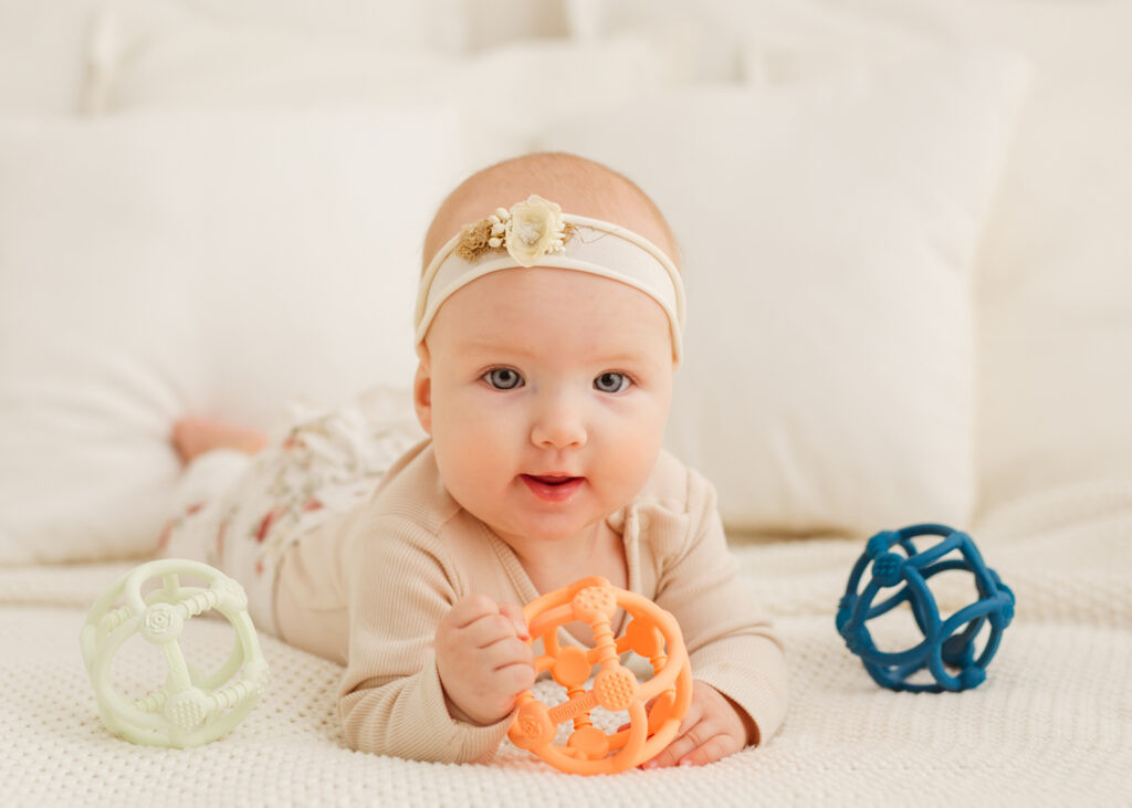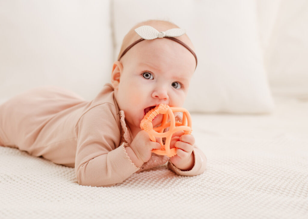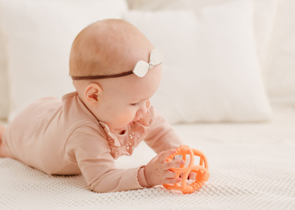 Az imádni való szilikon rágcsi labda szórakoztatja a kisgyermeket és megkönnyíti a fogzást. Ez az innovatív szilikon játék törés- és deformációálló. A labda különböző textúrákkal rendelkezik, hogy rágás közben enyhülést nyújtson a fogzástól fájó baba ínyének.