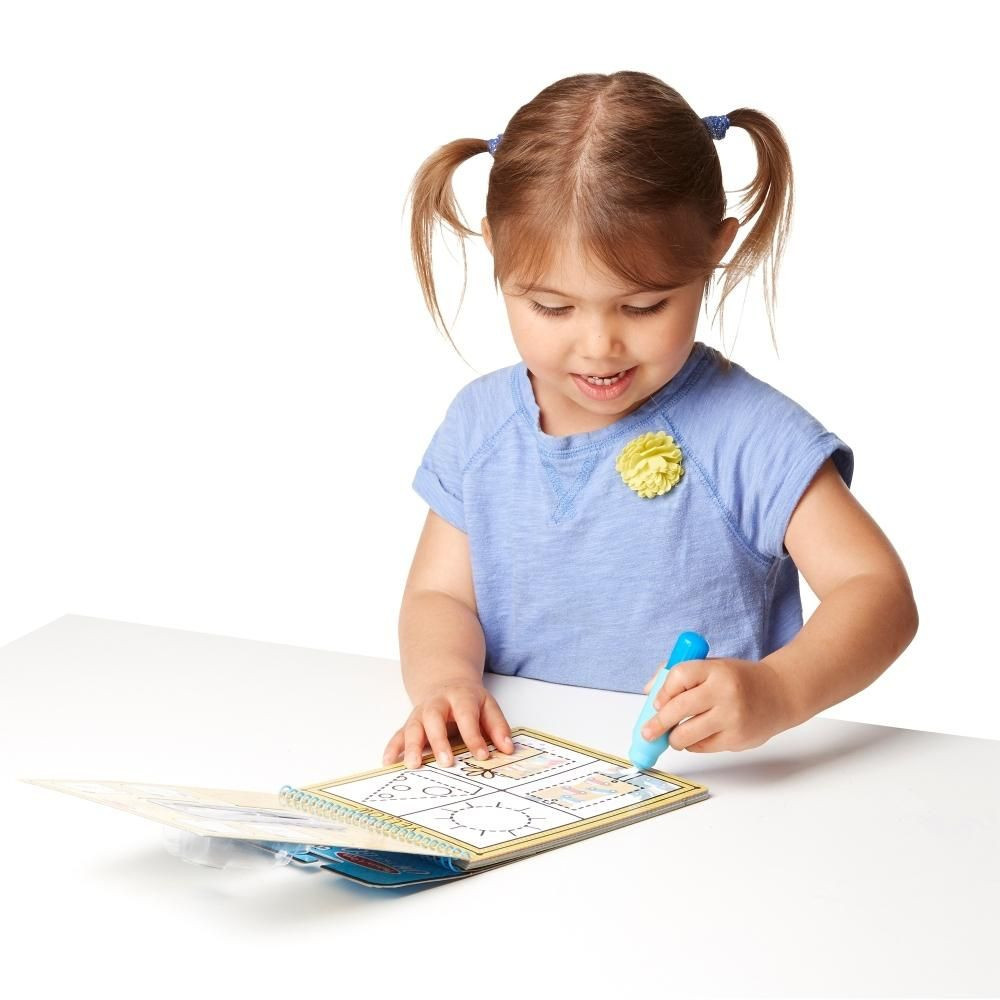 Paca és maszatolás nélkül festhet most gyermeked ezzel a vizes filctollas színezővel, ami 4 újrafesthető lapot és egy újratölthető filctollat tartalmaz. Egyszerűen csak színezd ki az egyes oldalakat, amin különböző különböző formák - körök, háromszögek, négyzetek és téglalapok segítségével tárgyak képei elevenednek meg, majd hagyd megszáradni, hogy a festék eltűnjön, így újra és úja festheted a lapot. A geometriai alakzatokatokat is magában foglaló képeken tárgyak kerületek elrejtésre, amiket a színezés után akár meg is kereshetsz. A vizes filctoll könnyen megfogható, így az apróságok számára sem okoz gondot a színezés. Kiváló játék utazáshoz is. 4 éves kortól ajánlott.