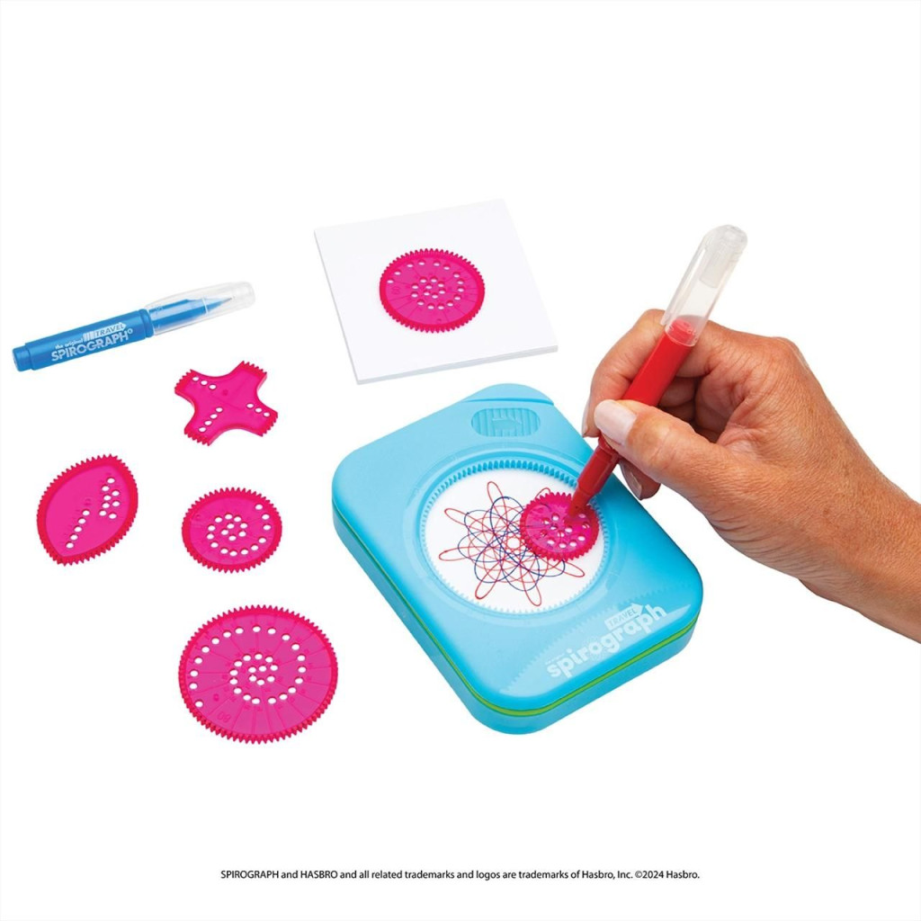 Vidd magaddal a spirográf mágikus élményét bármilyen utazáshoz! A Spirograph Travel utazó szett egy kompakt eszközt tartalmaz, amibe könnyen, stabilan behelyezheted a papírlapokat, amiket a doboz is tartalmaz egy 24 lapos tömbben. A készlet 6 kompakt stencillel érkezik, amivel szemkápráztató geometrikus alakzatok játékát varázsolhatod a papírra. A szettben két kupakos filcet is találsz a rajzoláshoz. Még új vagy a spriográfok világában? A dobozban egy kompakt útmutatót is találsz, amivel könnyen megtanulhatod a technikákat. Ezt a kreatív szettet 8 éves kortól ajánljuk.