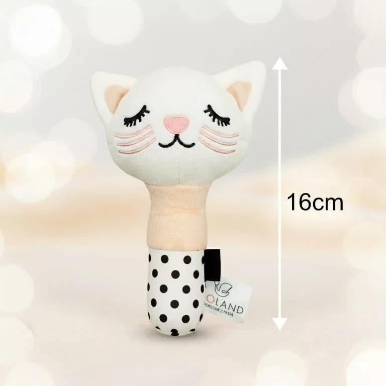 Bocioland sípoló baba játék cica 16 cm puha szenzoros játék sípoló hanggal, amely játékosan fejleszti a baba hallását és mozgását.