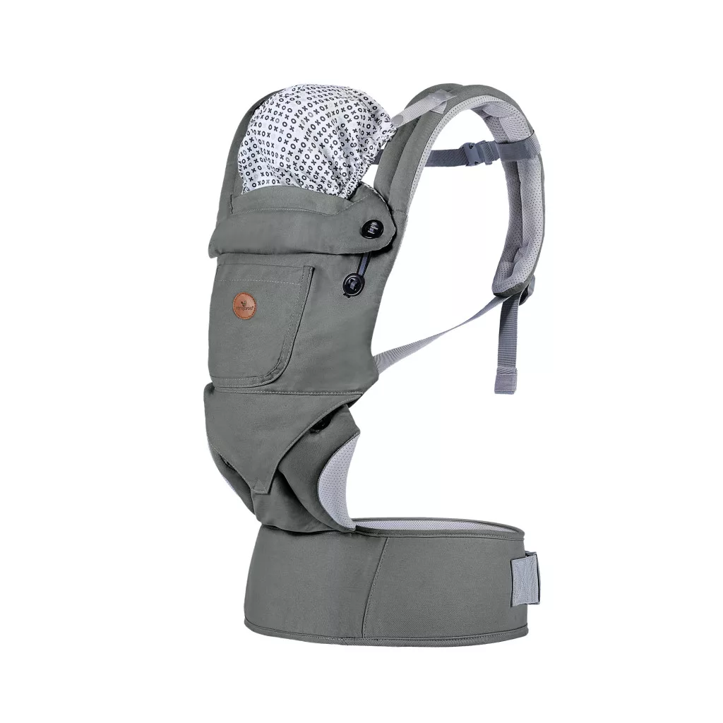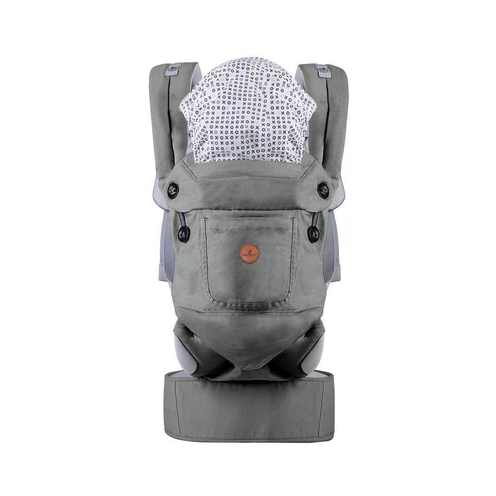Cangaroo babahordozás - 3 pozíciós - pamut - BORA szürke