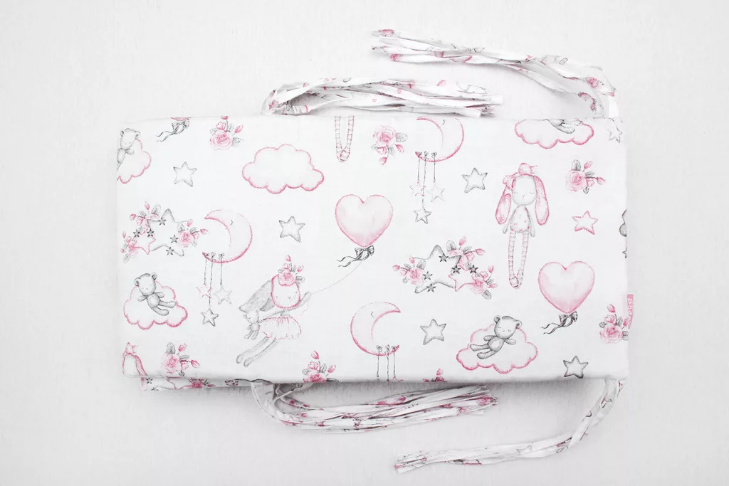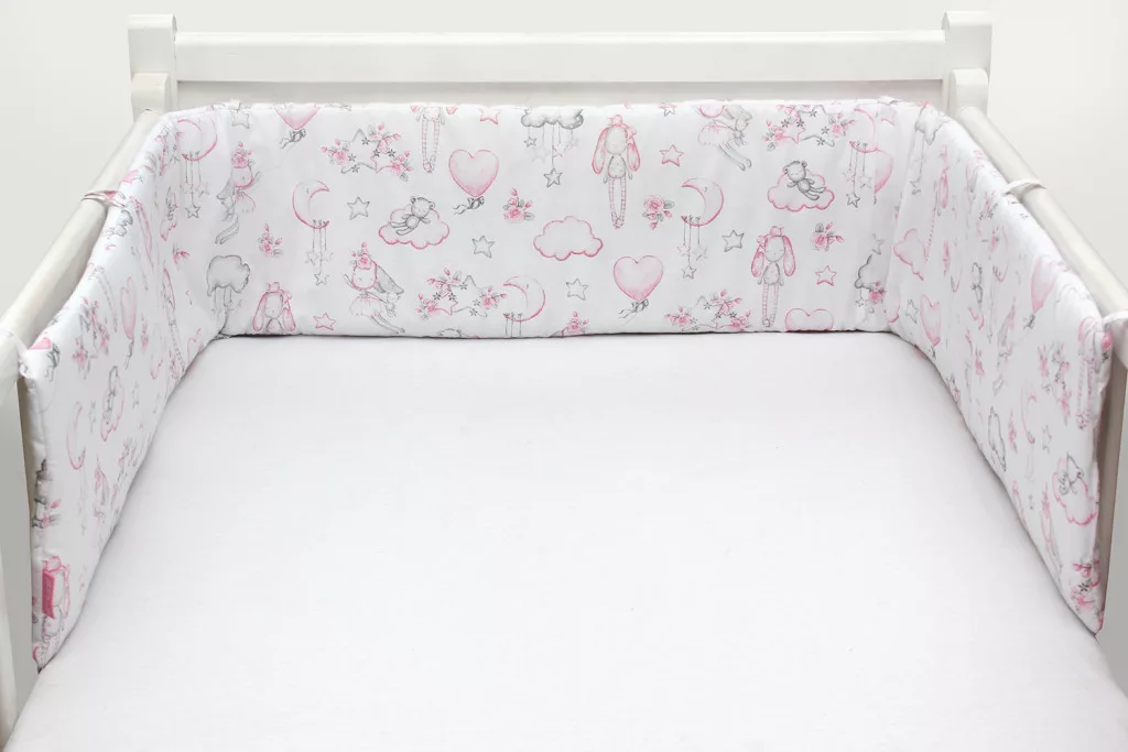 Pamut rácsvédő - PinkClouds - 210 cm kedves, nyuszis mintával készült védelem a kiságyba. Megóvja a babát az ütődésektől, miközben vidám hangulatot teremt a babaszobában.