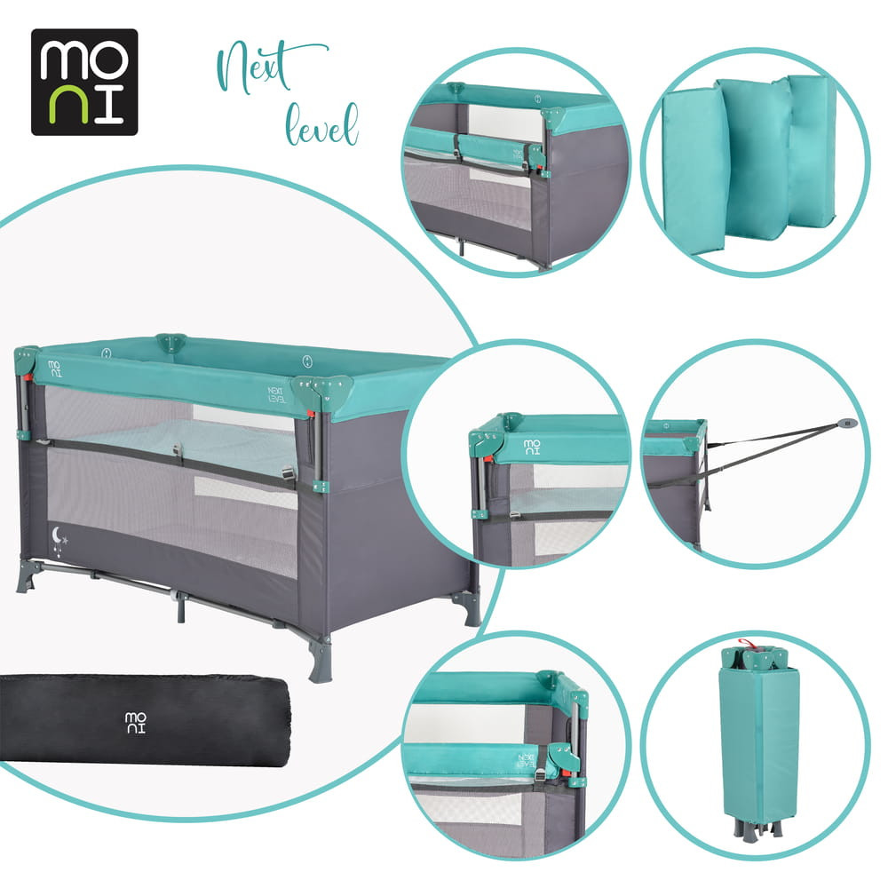 MONI Next level utazóágy lehajtható oldalfal 2 szint - türkíz