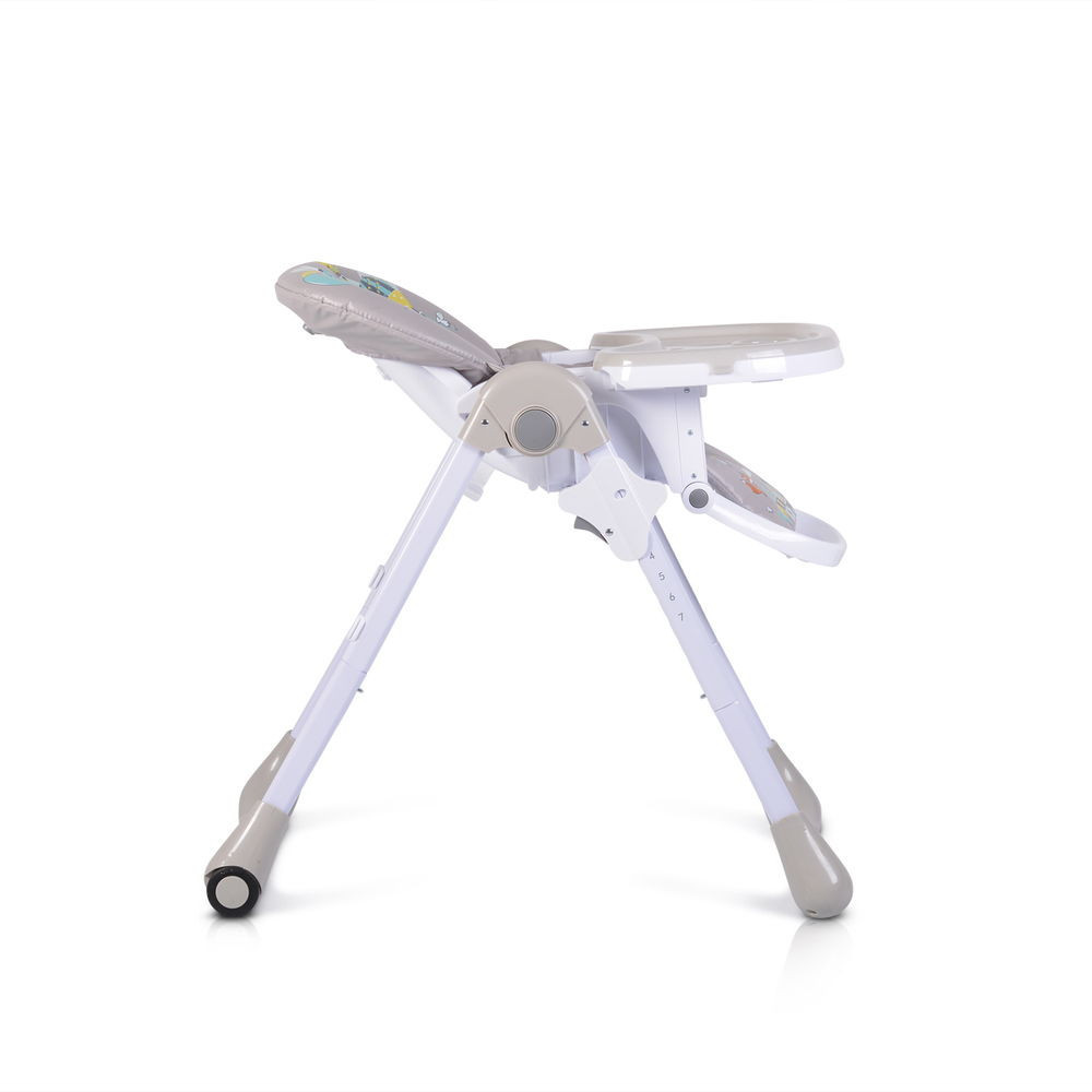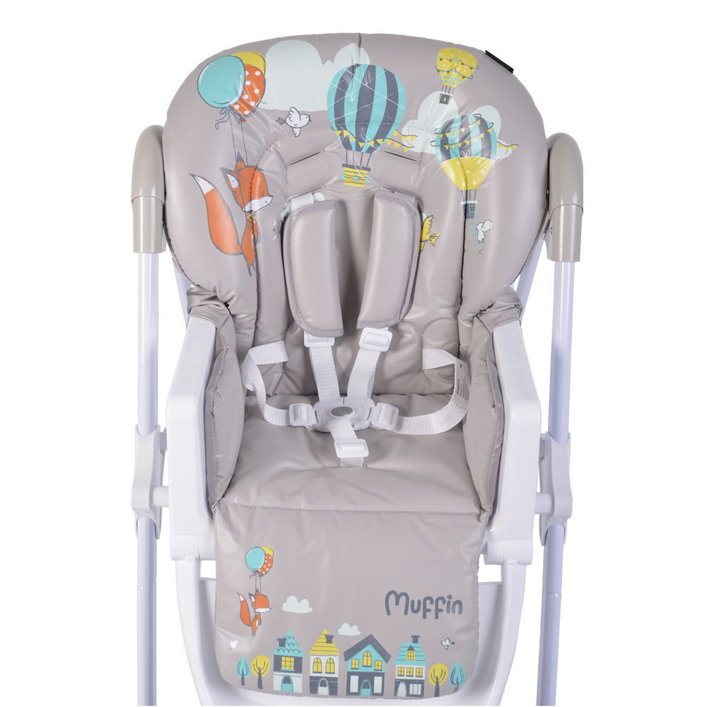 Muffin többfunkciós étkezőszék. Kényelmes, széles ülés, puha és rendkívül könnyen tisztítható, vízálló anyagból. Gyönyörű, modern design vidám gyermekes képekkel, amelyek vonzzák a gyermekek figyelmét és még szórakoztatóbbá teszik az étkezést. 3 háttámla pozíció. A legfekvőbb pozíció 145°-os, édes szundikáláshoz étkezés után. 7 ülésmagasság pozíció.
