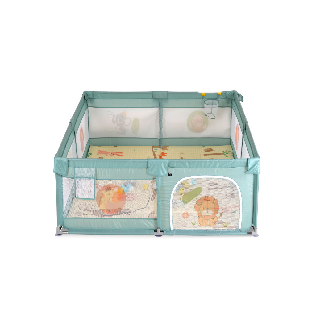 Moni GAMEZONE összecsukható járóka szőnyeggel, 60 labdával 120x120 MENTA