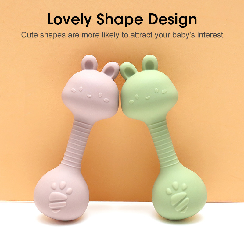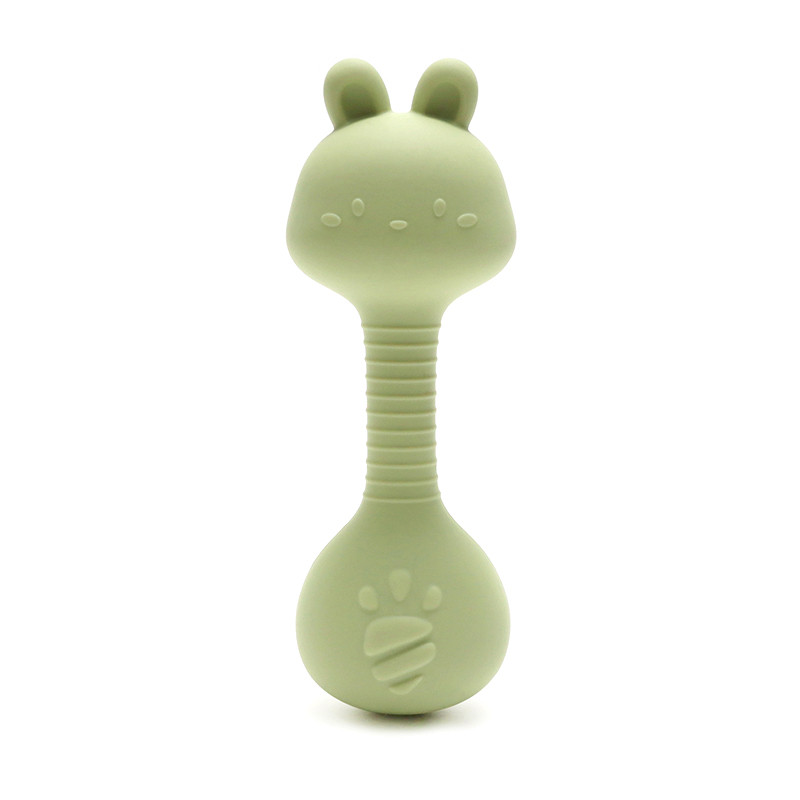 NiKiDs szilikon fogzást segítő rágóka csörgővel RABBIT Green